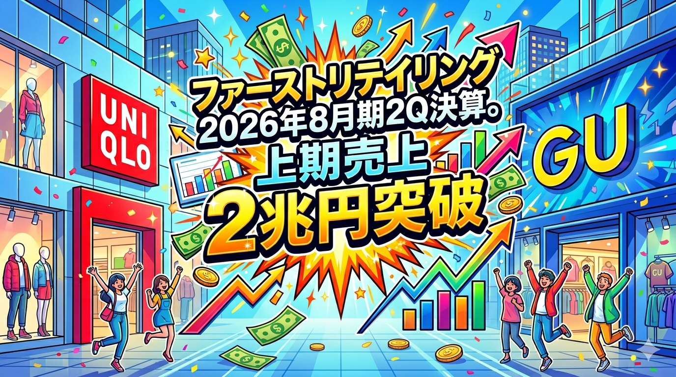 ファーストリテイリングの2026年8月期2Q決算は、上期売上2兆円突破という見出し以上に、利益率改善と全地域成長の同時達成が印象的だった。国内ユニクロが高収益を維持し、海外ユニクロがさらに成長し、GUも改善している。グローバルブランドの弱さは残るが、全社の勢いを止めるほどではない。